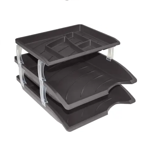 Enhance your workspace with the Chaz Plastic Letter Tray in a sleek black finish. Designed for efficiency and style, this organiser set is an essential addition to any office environment. The set includes multiple letter trays that allow you to sort and store documents, while the integrated organisers keep your desk clutter-free.